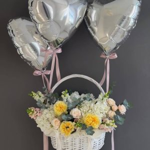 Кошик мікс білих-рожевих тюльпанів з евкаліптом