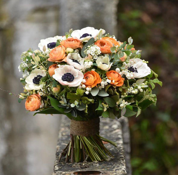 Анемони, ранункулюси, сезонні квіти та зелень.