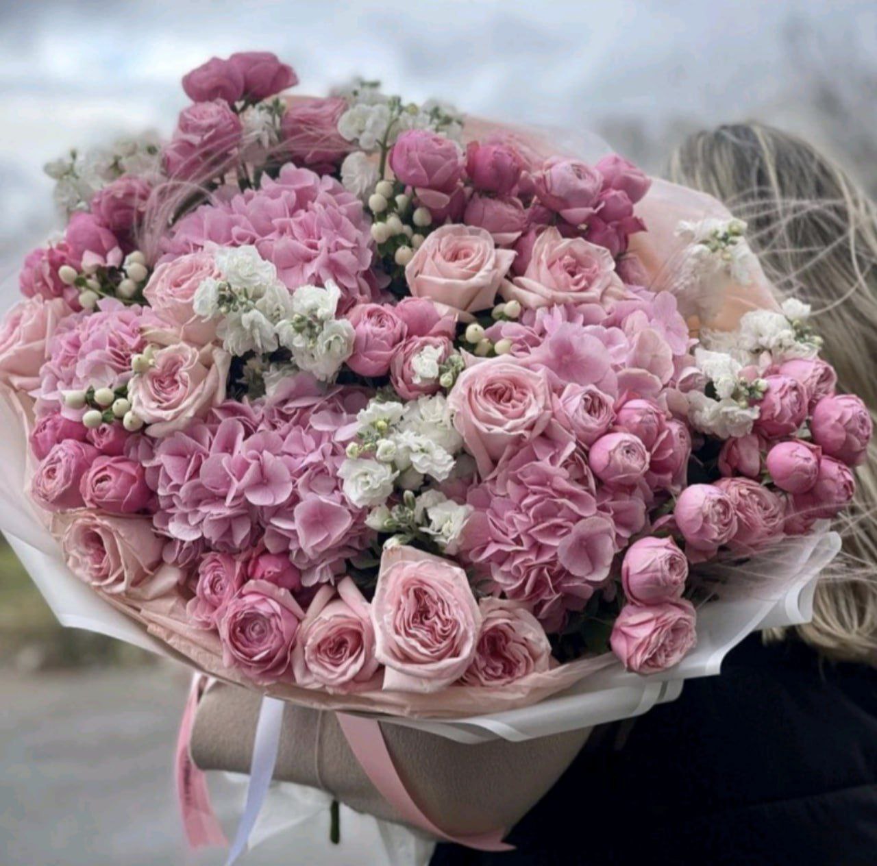 Гортензія, троянда-спрей, троянда піоновидна, хіперікум, матіола, калька, стрічка.