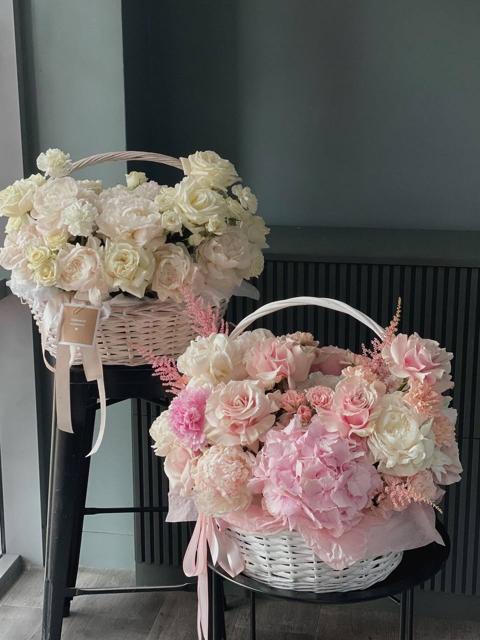 Гортензія, гвоздика, троянда, декор, кошик