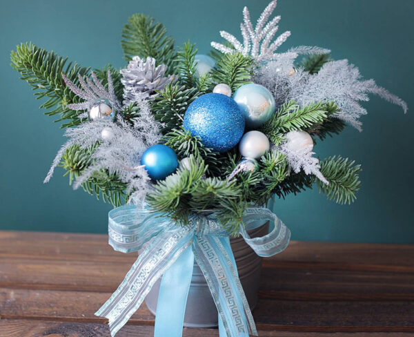 Хвоя, аспарагус, іграшки, декор, коробка.