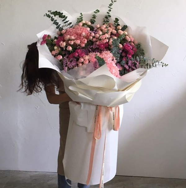 Троянда спрей мікс, солідаго, евкаліпт, гортензія, калька, стрічка.