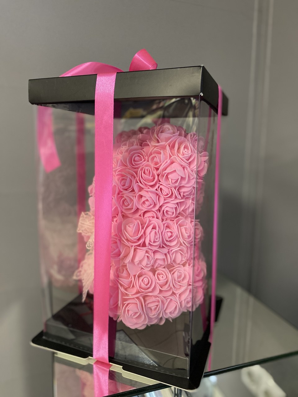 Ведмедик із фоаміранових троянд, коробка, стрічка
