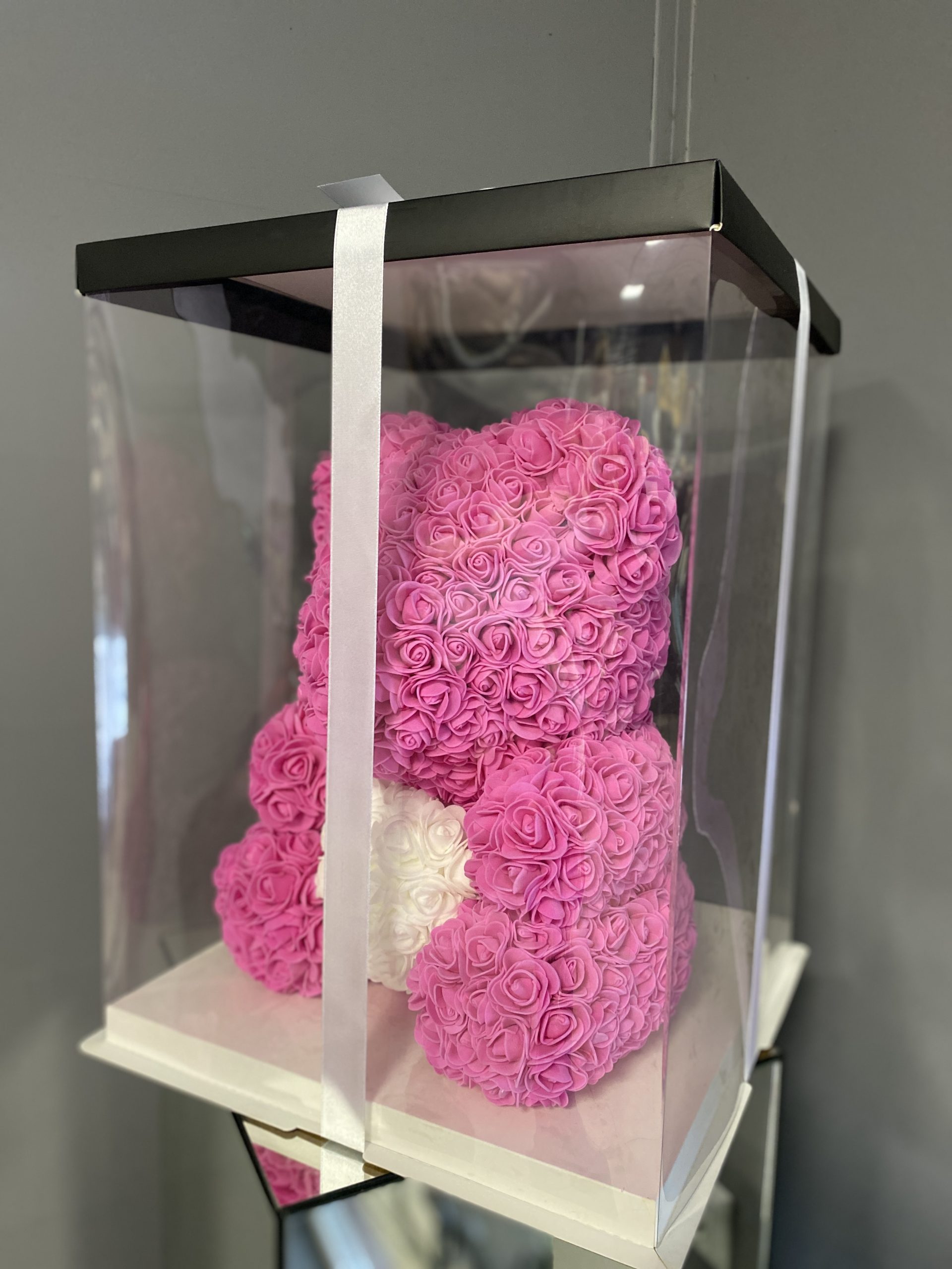 Ведмедик із фоаміранових троянд, коробка, стрічка