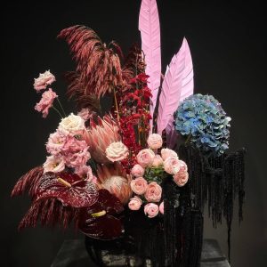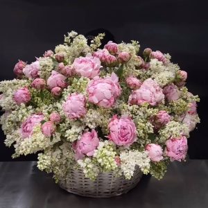 Кошик з піоновидних троянд ”Місті Баблз”
