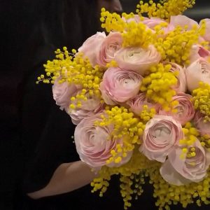 Букет ранункулюсів з мімозою